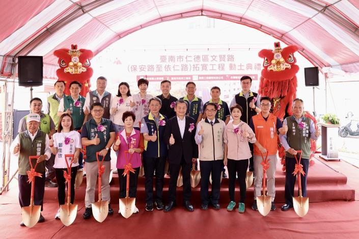 【記者黃石泉/台南報導】為提升仁德地區交通量能,台南市政府推動「仁德區文賢路拓寬工程(保安路至依仁路)」,台南市長黃偉哲今(7)日主持動土典禮,祈求工程平安順利,並期許工務團隊如質如期完工。黃偉哲表示,文賢路拓寬工程全長約2.87公里,總經費高達12.65億元,由中央補助5.88億元,市府自籌款為6.77億元,顯見地方對此重大建設的決心。他特別感謝立委及在地議員的支持,透過中央與地方合作,才能順利推動這條串連十三甲、保安、德南及中洲地區的南北向交通大動脈。