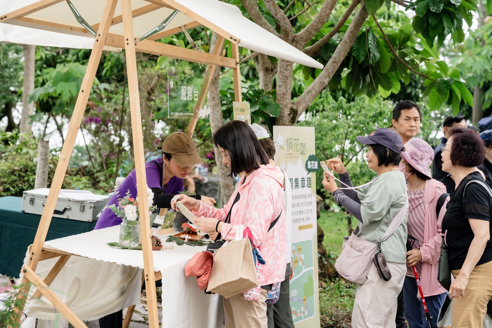 桐花祭以敬伯公儀式揭開活動序幕,在傳統客家八音的悠揚樂聲中,邀請在地鄉親一同祈求客家守護神─伯公庇佑地方風調雨順及活動平安順利。現場展演同樣精彩,由吉兒堡幼兒園小朋友帶來活潑的客語帶動唱、楠西國中學生吟誦客家詩詞,展現文化傳承的活力,並由南園客家箏樂團現場演奏,營造濃厚的客家藝文氛圍。此外,現場也有在地小農市集,匯集楠西在地農特產,讓民眾於賞花之餘,也能將楠西的鮮甜帶回家與親友分享。
