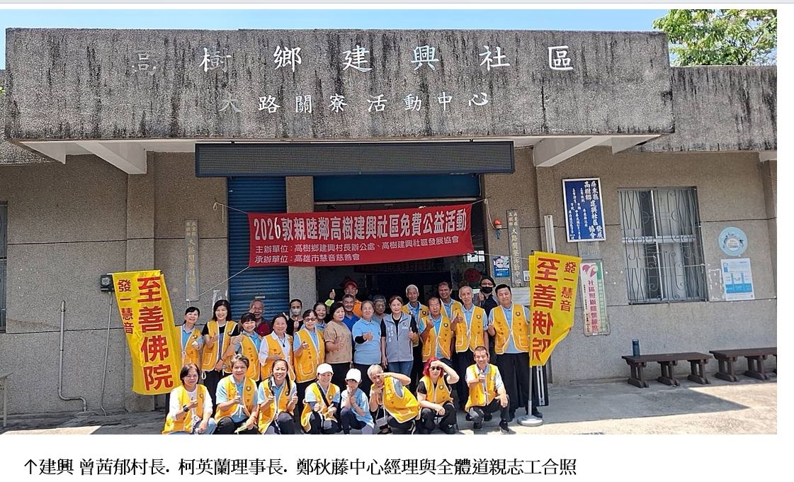 【記者田進山/屏東報導】一貫道發一慧音道場至善佛院義整團,中華慧音品格人文發展,蒞臨屏東縣高樹鄉大路關寮建興社區活動中心,辦理2026敦親睦鄰關懷服務展愛心活動。主持人洪志偉講師表示,首先感謝建興曾茜郁村長,踴躍響應號召村民來參加,還有建興社區發展協會柯英蘭理事長,提供活動中心來協助支持舉辦這次活動,促進村民身心靈健康,敦親睦鄰守望相助,廣結善緣永保安康快樂長伴。