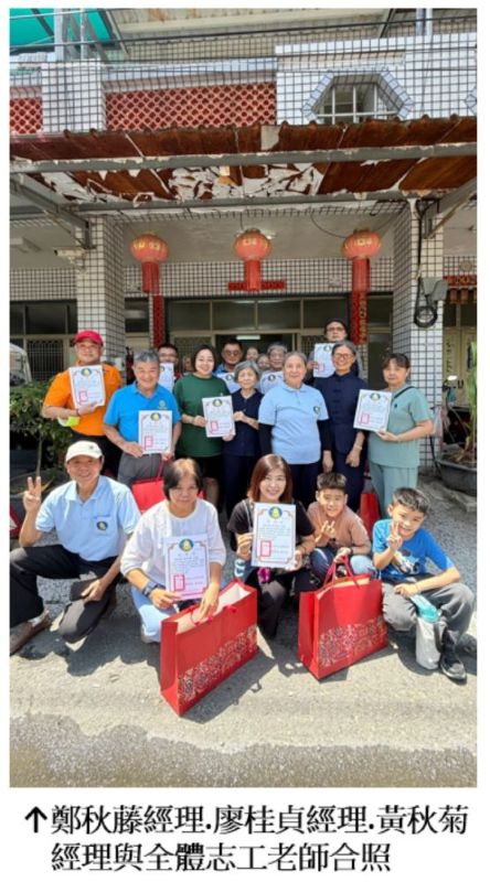 一群默默行善各行各業學有專精,志工老師護理師郭美華、義剪老師黄麗美、張綺恩,電子針灸老師簡荷雅、吳瀅萱,推拿老師黄其南、張少豪、陳學承、張登淵、黄國輝、廖光湧、謝全坤時常受邀請參加各地政府機關,民間團體、廟宇、道場、慈善會、獅子會、中草藥協會、華山基金會、慈濟慈善基金會、各協會所辦的活動,以誠摯無為的善心與愛心為社會服務,攜手投入公益行列回饋社會的責任與使命,他們的精神令人感動與動容,因為他們為自己寫下一篇永恒不休精彩又燦爛的故事。