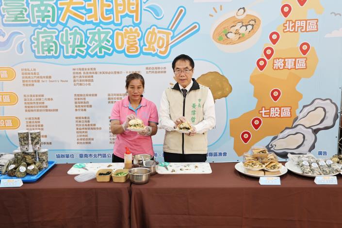 黃偉哲表示,蚵仔向來深受國人喜愛,不論小吃攤或高級餐廳皆為熱門食材。臺南沿海如七股、北門、將軍、安平等地,因水質、潮汐條件良好,加上地理環境優勢,非常適合蚵仔養殖,品質優良、風味鮮美。