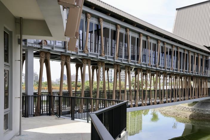 黃偉哲進一步表示,場館內部規劃完善,導入全齡使用理念,提供各種不同需求與年齡層的民眾使用;連接場館的橋梁採上下分層設計,下層供一般通行,上層則為運動館使用者動線,提升動線便利性。