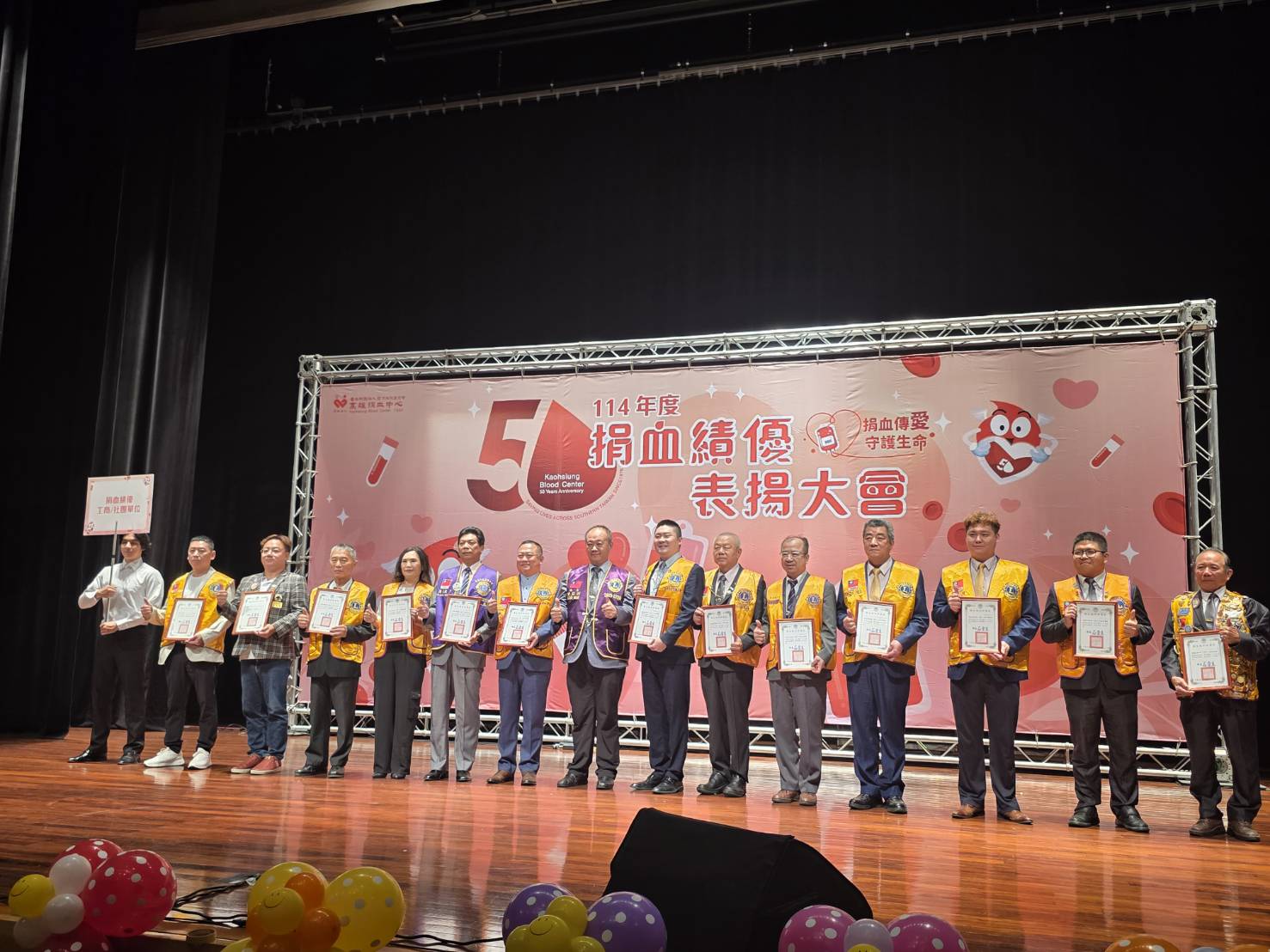 114年度捐血績優表揚大會感謝捐血人及捐血團體(台南場)台南市獅子會300E-1區 深獲讚許