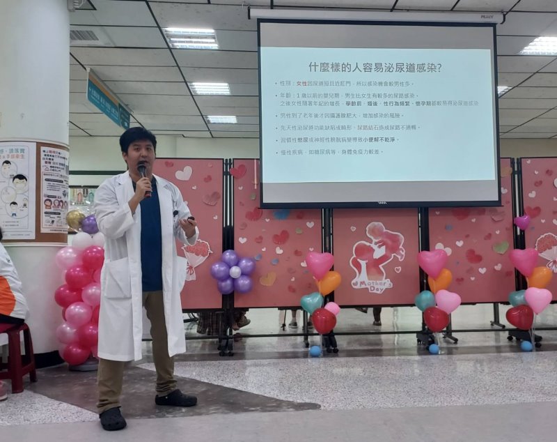 講座中,腎臟內科羅翊中醫師說明,腎盂腎炎是泌尿道感染的一種,致病原因為細菌感染後,經尿道進入膀胱再上行至腎臟或從血液流到腎臟,造成腎臟發炎。女性因尿道短且靠近肛門口,較易罹患泌尿道感染,須多加注意預防保健,並在症狀發生時盡速就醫以免造成併發症。