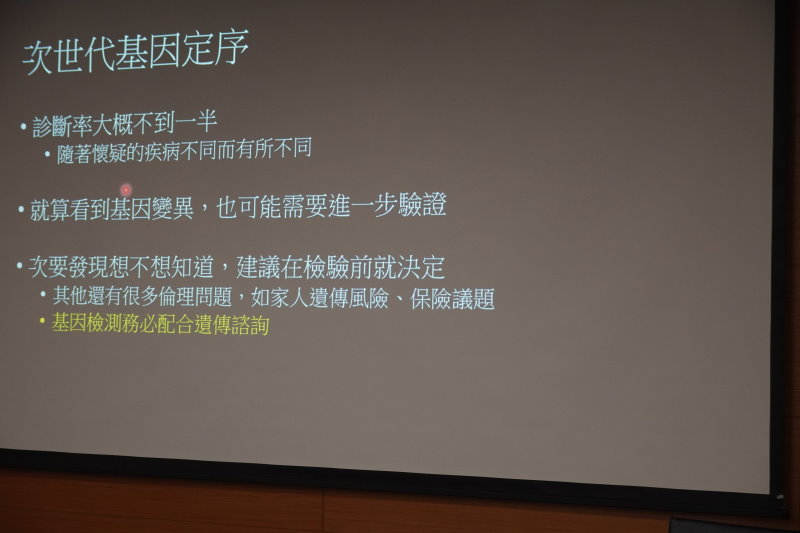 林伯昱醫師提醒,次世代基因定序雖然能一次檢驗大量基因,但診斷力大約只有一半,而且就算發現可能造成疾病的基因變異,也時常需要進一步驗證才能確診。目前次世代基因定序為自費檢驗,病患接受檢驗前,務必和醫療團隊詳細討論,對次世代基因定序充分理解和合理期待,才能促進醫病雙向合作,協助病患及早得到正確診斷。