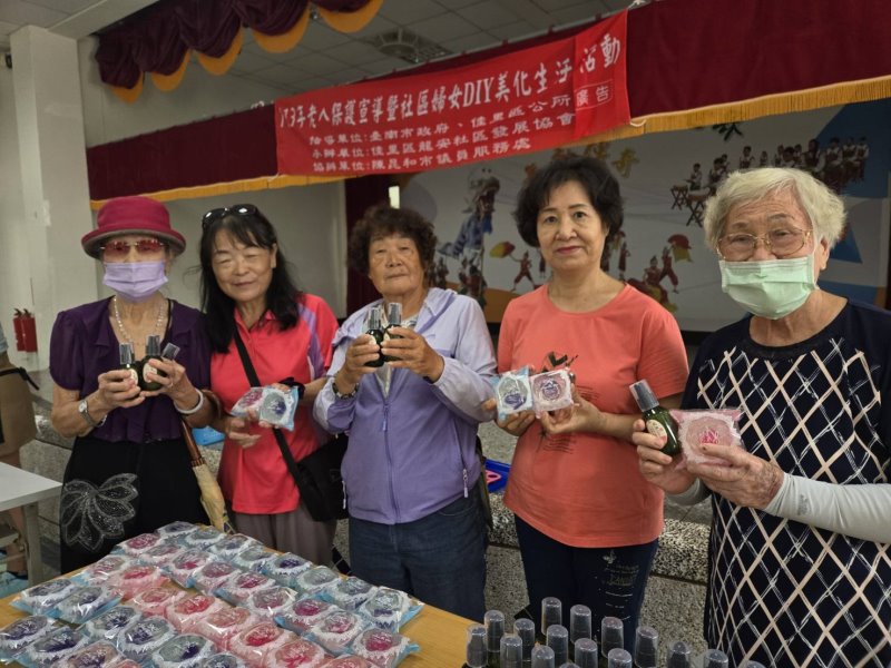 台南佳里區龍安社區辦理婦女成長營~DIY防疫皂活動,佳里分局派員辦理交通安全宣導。