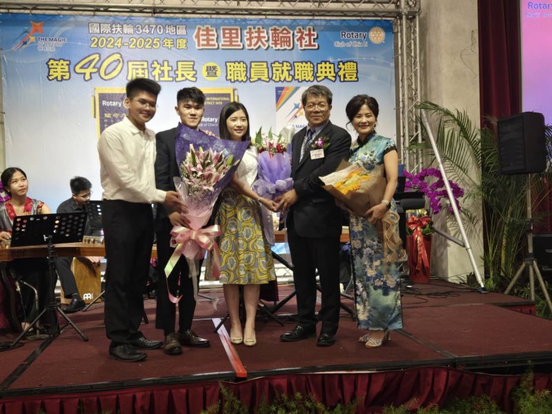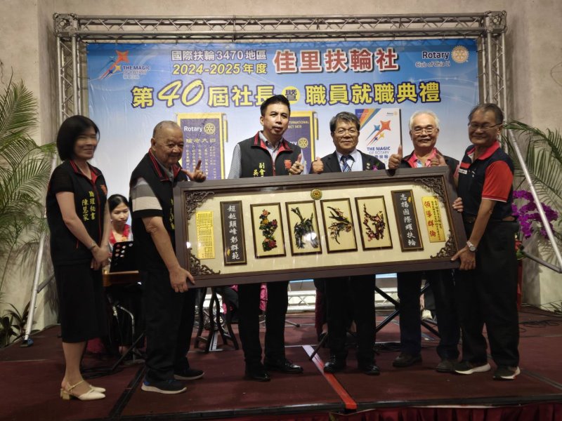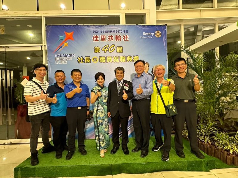 本年欣逢佳里扶輪社成立40週年慶,3470地區總監林庚賢親臨會場主持卸新任社長交接典禮並獻上期勉與祝福,祝福社運昌隆,永續推動扶輪社大愛精神。另交陪聯誼友社新營社社長鄭信南、南星社社長黃見助及台北圓環社社長李哲欽亦以書面賀詞為題,期勉新任社長楊志超發揮所長帶領所屬社員繼續濟弱扶貧,齊心共行,為社會公益齊努力,讓善緣永循環。