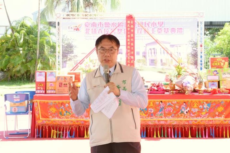 【記者田進山/台南報導】台南市鹽水區創校已有80年歷史的月津國小在今年0403地震中部分校舍毀損,市府為讓學童有更佳學習環境,率先動支災害準備金辦理重建,今(10)日北棟A校舍整建工程動土典禮在學生台灣獅隊鑼鼓喧天的精采演出與社區家長的熱情祝賀聲中揭開序幕,市長黃偉哲及議員王宣貿、沈家鳳、李宗翰、蔡育輝蒞臨見證,預計114年11月完工。