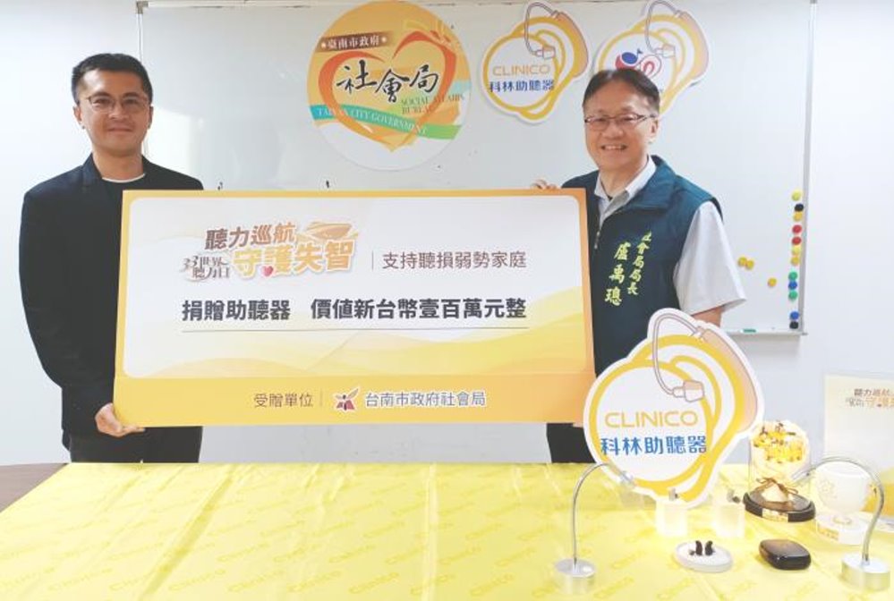 【記者黃石泉/台南報導】科林國際助聽器股份有限公司有感聽力對於長輩健康的重要性,今(12)日於臺南市政府永華市政中心辦理捐贈助聽器儀式,並由社會局盧禹璁局長代表黃偉哲市長回贈感謝狀,並感謝中華民國聲暉聯合會榮譽理事長莫素娟協助連繫安排,此公益捐贈期間至114年2月28日,只要為18歲以上臺南市民,領有低收或中低收入戶證明或為社福補助身分者,經臺南市永華或官田輔具中心評估有使用助聽器改善聽力之需求,則由輔具中心轉介至科林助聽器各服務據點,民眾可持轉介單至各據點索取助聽器。
