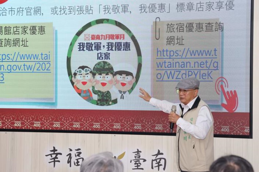 圖:台南市府結合民間推出《台南九月敬軍月-我敬軍,我優惠》活動(記者陳岑博攝)