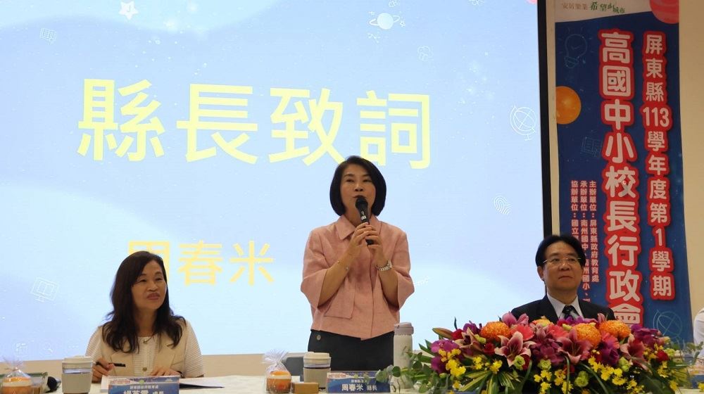 【記者黃石泉/屏東縣報導】屏東縣113學年度第一學期高國中小校長行政會議,於113年8月22日在內埔鄉屏東科技大學舉行,全縣高國中小學校長齊聚一堂,共同研議教育施政重點與教育發展願景。屏東縣長周春米更是親臨會議勉勵,感謝校長對於教育的耕耘及奉獻。