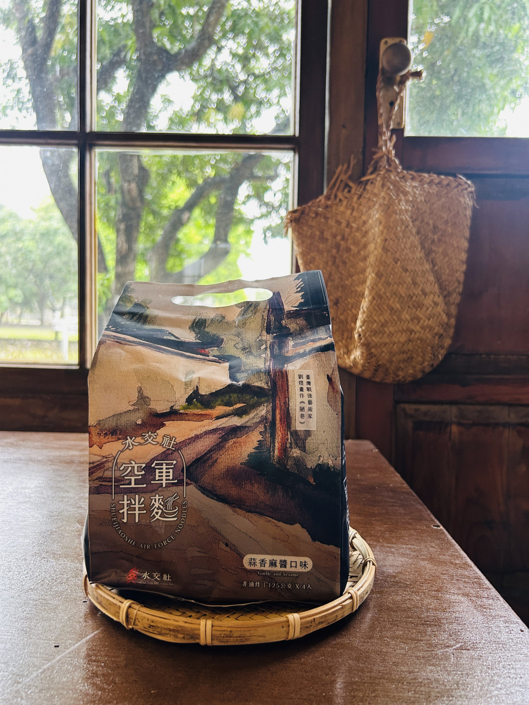 「空軍拌麵」包裝視覺運用戰後來臺藝術家劉煜的畫作〈陋巷〉,劉煜老師1919年出生於中國東北,師事林風眠、呂霞光等名師,具有豐富的藝術背景。1947年來臺後任臺灣省立工學院(今成功大學)顏水龍教授的素描助教,後於白色恐怖時期受到波及,輾轉任教於臺南空軍子弟學校(今志開國小),對戰後臺灣美術史具有重要貢獻。