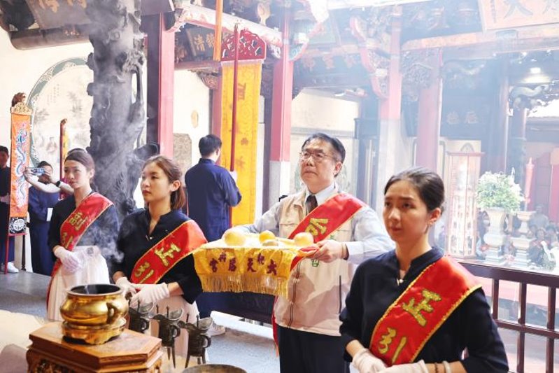 【記者黃石泉/台南報導】祀典大天后宮今(15)日舉行秋祭釋奠大典,台南市長黃偉哲特別前往出席並擔任終獻官,與各界宮廟代表共同祈求風調雨順、國泰民安,現場科儀莊嚴殊勝。