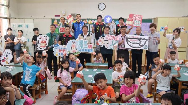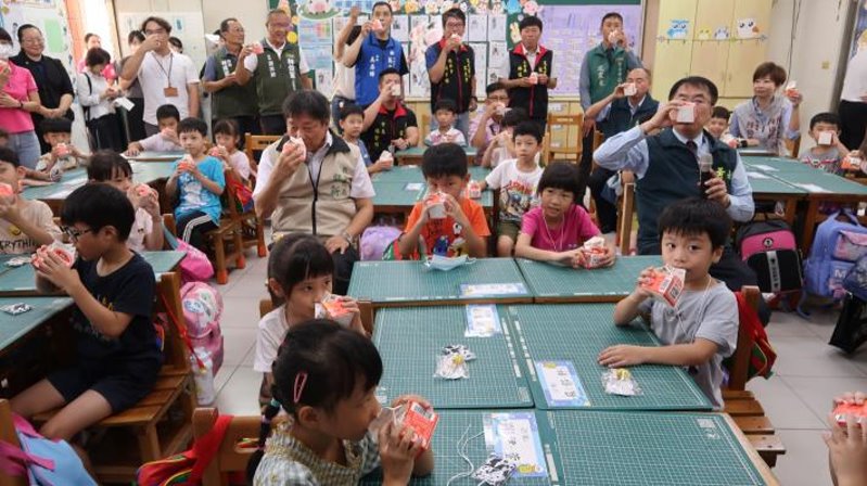台南市長黃偉哲與學童一起大口喝牛奶 齊聲讚:國產乳品棒 補鈣增健康!