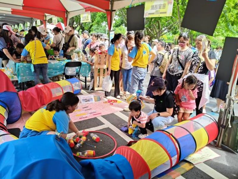 教育局表示,今日嘉年華各園所設計多樣性的闖關活動,包含防災知識小學堂、記憶翻翻樂、防災桌遊、防汛拼圖、防災避難包-大富翁、密室逃脫(火燒厝)、滅火特攻隊、套圈圈、偵測器在哪裡、防汛井字棋、搶救小小兵(防墜魔方、地動保命來鬥圖)等11關卡,讓親子共同體驗學習防災知識與技能,同時藉由消防局及警察局宣導,了解對災害來臨時如何應對。