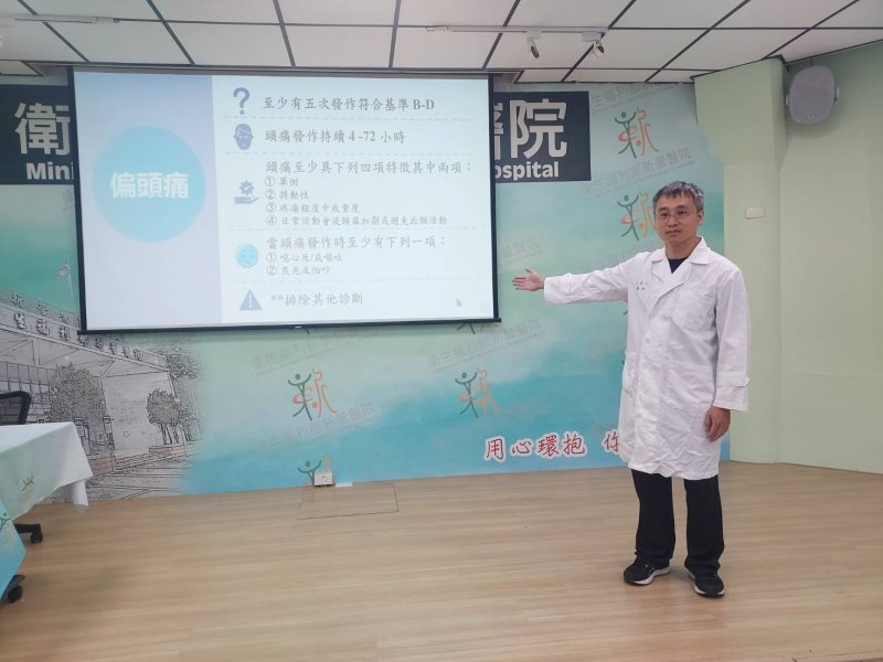 【記者田進山/台南報導】南市一位連先生,正值壯年,從年輕的時候開始就有偏頭痛的情況。他的頭痛會隨著心臟搏動而痛。痛起來連走路震動到都受不了,伴隨噁心嘔吐,怕光怕吵。長期自己買感冒藥水或止痛藥,有痛就吃。經過預防藥物治療以後,幾個月才發作一次,生活品質有很大的提升。