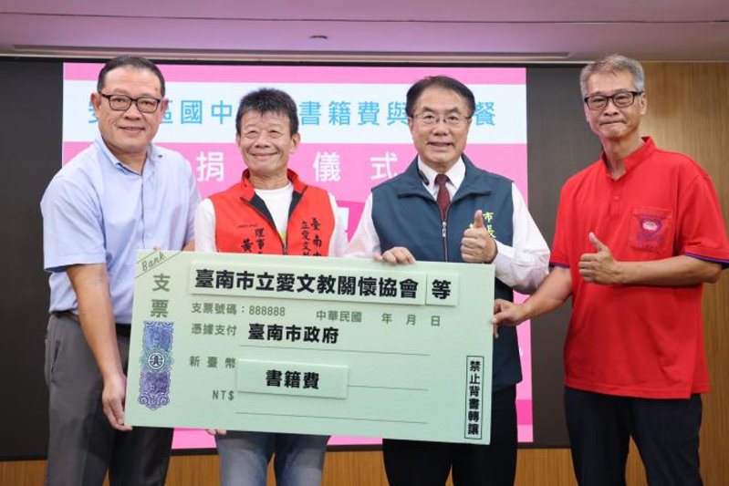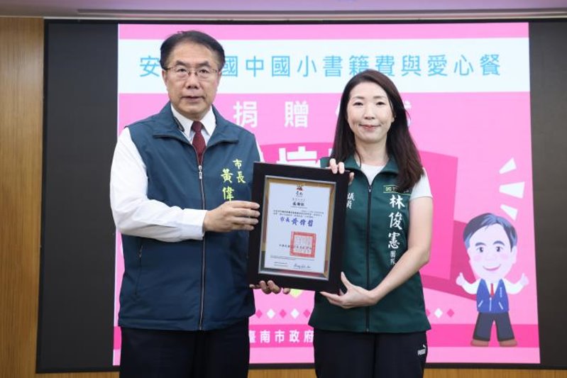 【記者黃石泉/台南報導】做愛心一起來!臺南市多個民間團體攜手合作,共同捐助安南區國中小學書籍費用與愛心餐,總計17校受惠,捐贈總金額約為30萬元。台南市政府今(27)日舉辦捐贈儀式,市長黃偉哲頒贈感謝狀,肯定民間單位的無私奉獻與對教育的重視,盼望能讓所有學子們擁有更優質、更完備的學習資源與空間,也讓孩子們在成長的過程中,皆能感受到社會溫暖的關懷與幸福。市議員蔡麗青與陳怡珍也到場共襄盛舉。