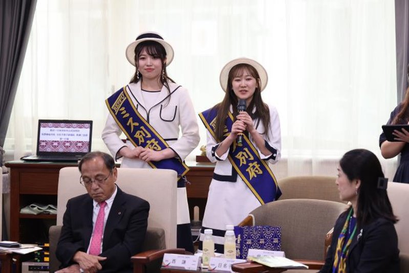 別府市長長野恭紘感謝台南市的熱情歡迎,台灣與日本的友情不在話下,疫情前每年約有10萬人次的台灣觀光客來訪別府,而這次藉由與台灣直航包機的機會,帶了約150名別府市民來訪,希望藉此讓更多別府市的民眾了解台南,期待今後雙方交流更加深化。別府市長也特別請MISS別府介紹別府市的特色及觀光物產。