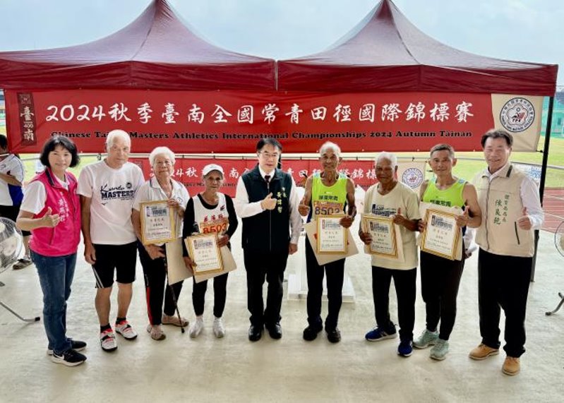 市長黃偉哲出席開幕典禮,歡迎本次賽事國內外隊伍參賽,包括來自香港、日本、新加坡、馬來西亞、荷蘭及南非的外國選手,這不僅是一場體育競賽,更是一場國際體育交流的盛會,除了感受常青選手們的運動熱情與無畏精神,賽事期間也恰逢臺南400運動嘉年華,市府誠摯歡迎選手與觀眾除了可以欣賞精彩賽事外,還能體驗臺南豐富的運動歷史文化、美食饗宴,享受臺南的魅力黃偉哲也感謝各協辦單位的大力支持,特別是臺南市體育總會、臺南市體育總會田徑委員會、臺南市立中山國中、金城國中及長榮中學,讓本屆賽事順利舉辦,期待在大家的共同參與下,讓2024秋季國際常青田徑錦標賽圓滿成功,為臺南400年慶典增添光彩!