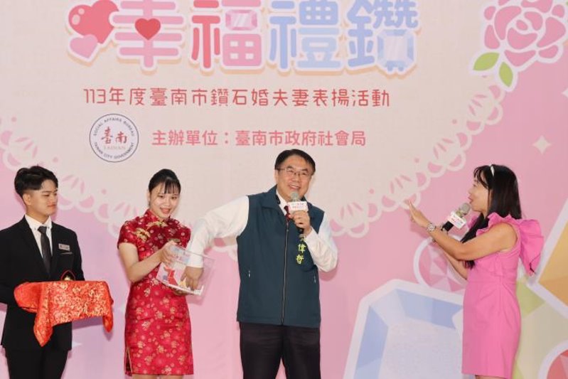 黃偉哲市長表示,今年台南市有27對被提報鑽石婚的夫妻,令人羨慕,每對夫妻在結婚時都說要恩愛一輩子,但是能夠真正攜手走過60年婚姻,甚至更長的,其實非常不容易,因此在這溫馨的時刻,他要特別祝福所有接受鑽石婚表揚的夫妻,和所有到場的市民朋友,珍惜身邊的另一半,執子之手,與子偕老,這不僅結婚的誓言,也是每個人一生努力追求的最高幸福。