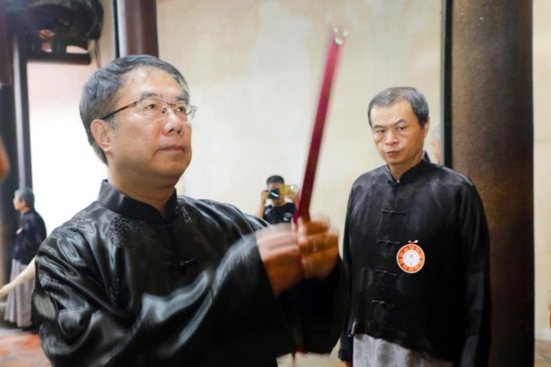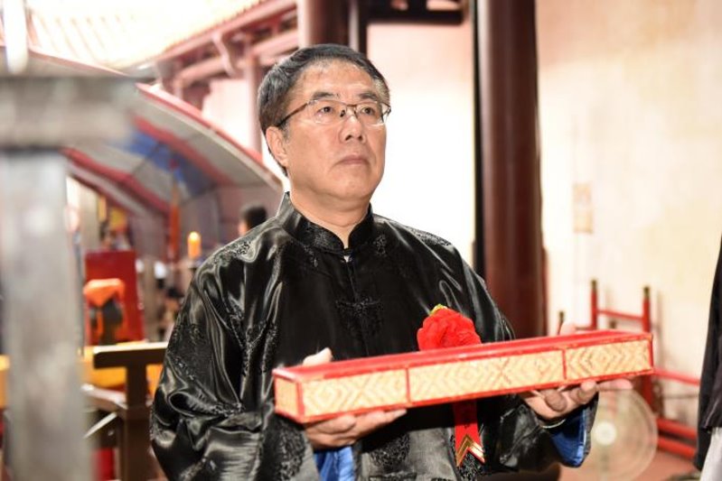 今日儀式依循古禮進行,祭典依啟扉、排班、班齊、執事者各執其事進行,黃偉哲市長偕同與祭人員行初獻禮、亞獻禮、終獻禮以及分獻禮等流程,向武聖關公致上崇高敬意。