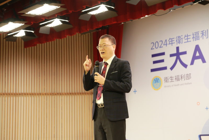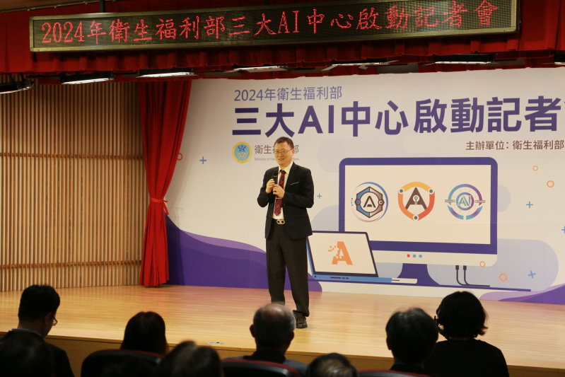 圖:成大醫院李經維院長於衛生福利部三大AI中心啟動記者會現場致詞(記者田進山攝)