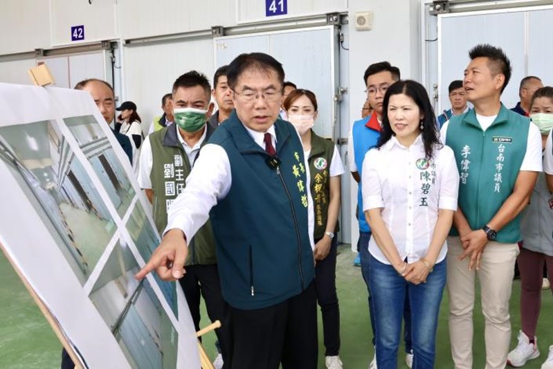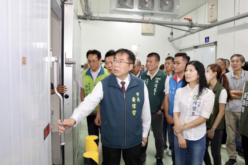 【記者黃石泉/台南報導】為解決近年農產品運銷冷鏈產品需求逐年攀升,台南市政府向農業部農糧署爭取補助款,為新化果菜市場新建大型冷藏庫,配合市府自籌款,總經費1億5,350萬元,工程今(113)年於9月15日竣工,預計明年1月啟用後,蔬果調節量每年可達2,000公噸以上。今(11)日台南市長黃偉哲與副議長林志展、議員陳碧玉、李偉智前往視察新化果菜市場冷藏庫完工情況,盼冷鏈工程協助穩定農產品市場產銷調節。