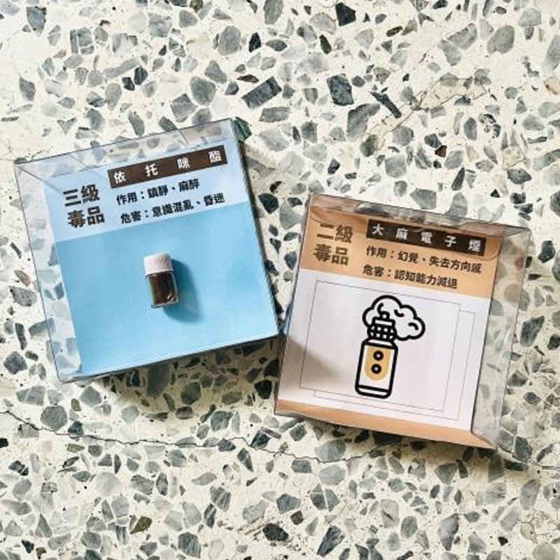 依托咪酯(Etomidate)作用於中樞神經,大量使用後甚至會像「喪屍」般渾身顫抖而無法站立,因此有「喪屍煙彈」、「上頭煙」、「睡眠煙彈」之稱。而同為新興毒品的「彩虹菸」是屬於合成卡西酮類,內含多種成分的毒品,「彩虹菸」除了名字如夢似幻、外型繽紛多彩外,其中煙油以各種水果口味作為販售噱頭,包含橘子、藍莓、草莓、芒果等,吸引青少年目光,對於不知其影響的青少年而言更是難防。吸食混搭毒品容易產生幻覺、暴力自殘,嚴重者還會出現膀胱功能失常、心臟衰竭甚至死亡等副作用。