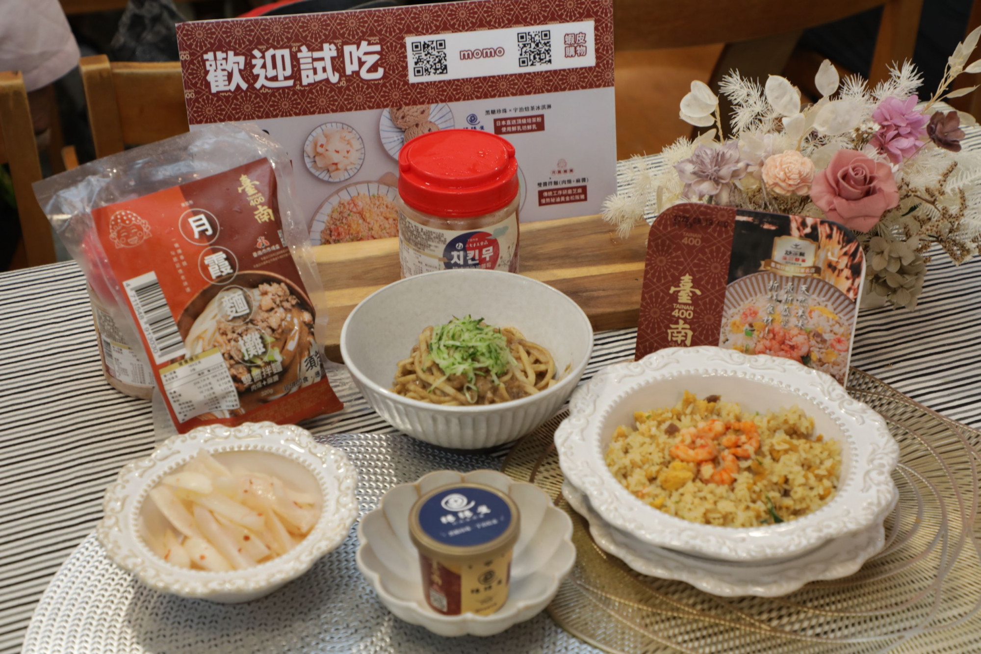 市長黃偉哲表示,臺南小吃美食不勝枚舉,不僅有大家耳熟能詳的美食,還有許多隱藏版的傳統市場好滋味,此次特別輔導4項特色市場美食,如西門淺草市場飯賣人口炒飯專賣店的「火燒蝦肉絲蛋炒飯」、綣綣屋的「黑糖珍珠×宇治焙茶冰淇淋」、東菜市月霞麵攤的「雙醬拌麵」及下營市場二七手工食品的「韓式道地脆蘿蔔」等4款優質冷凍冷藏商品,透過電商平台,讓臺南傳統市場名攤美食不再侷限當地,全國消費者皆可輕鬆入手、在家大啖臺南美食。