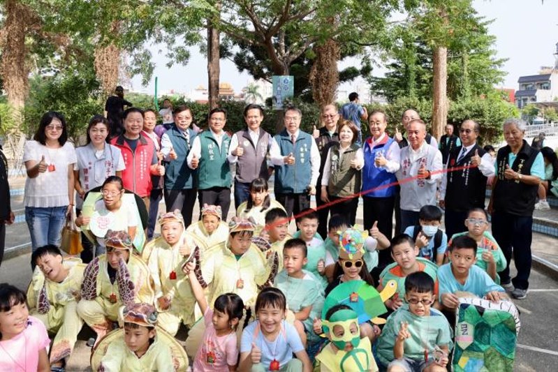 【記者陳岑博/台南報導】台南市下營區「武承恩公園」蘊含豐富的生態資源,是重要的休憩及生態環境教育場所。為提升公園的整體效益,並響應當地居民對環境整頓與景觀再造的期望,下營區公所規劃景觀環境改善工程,增設上下層水岸護坡、無障礙空間建構和綠美化等設施,致力打造具備永續性、環保、美觀、休憩與環境教育功能的多元生態公園。今(20)日武承恩公園的台灣龜生態園區辦理啟用儀式,台南市長黃偉哲及立委林俊憲、賴惠員與議員陳秋宏、吳通龍、尤榮智皆到場共襄盛舉。