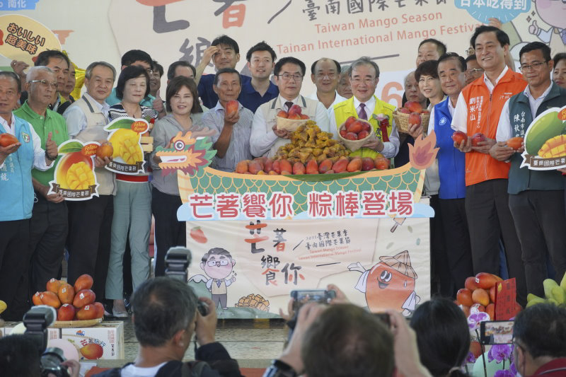 2023台南國際芒果節今日起將陸續在走馬瀨農場、玉井公有零售市場、南化里天后宮、左鎮驛站、楠西鹿田里江家古厝、官田渡拔青果市場和大內公有市場等重要芒果產區舉行,市府今日特別於走馬瀨農場舉辦開幕活動,包括農糧署長胡忠一、立法委員郭國文、賴惠員、陳亭妃,市議員尤榮智、許至椿、吳通龍、林志展、陳秋宏、周奕齊、陳怡珍、周嘉韋,日本群馬縣水上町町長阿部賢一、議長石坂武等貴賓,都一同出席歡慶芒果季開跑及端午節。