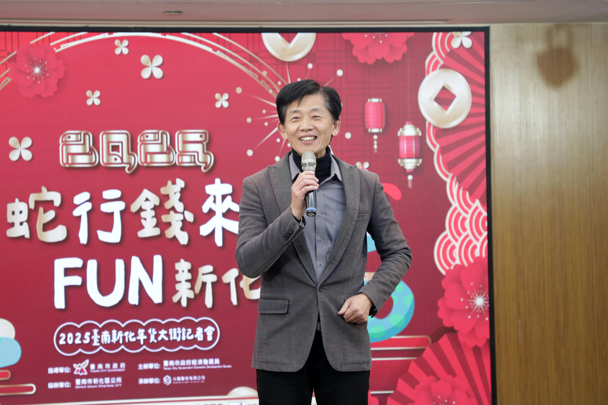 【特派員侯翠玲/台南報導】農曆春節腳步將近,今年將邁入第14年的「臺南新化年貨大街」也將於1月17日至1月22日在新化老街及大目降廣場周邊熱鬧登場,臺南市政府今(13)日在永華市政中心舉辦活動記者會,由新化在地扶桑花舞團帶來精彩開場表演,市議員李偉智也到場參與,副市長葉澤山代表市長黃偉哲,邀請大家來新化採買年貨,迎接好運金蛇年。