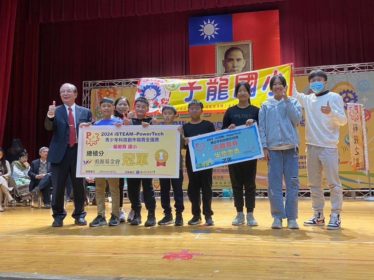 子龍國小在偏鄉賽國小組拿下冠軍,指導教師胡維軒指出,iSTEAM PowerTech結合仿生機器人實作課程,讓學生在製作過程中不僅培養濃厚興趣,也透過克服各種挑戰鍛鍊出更強大的團隊合作能力。參賽學生陳褓原表示,感謝老師假日的辛勤付出與不厭其煩的指導,讓子龍國小團隊贏得最高榮耀。