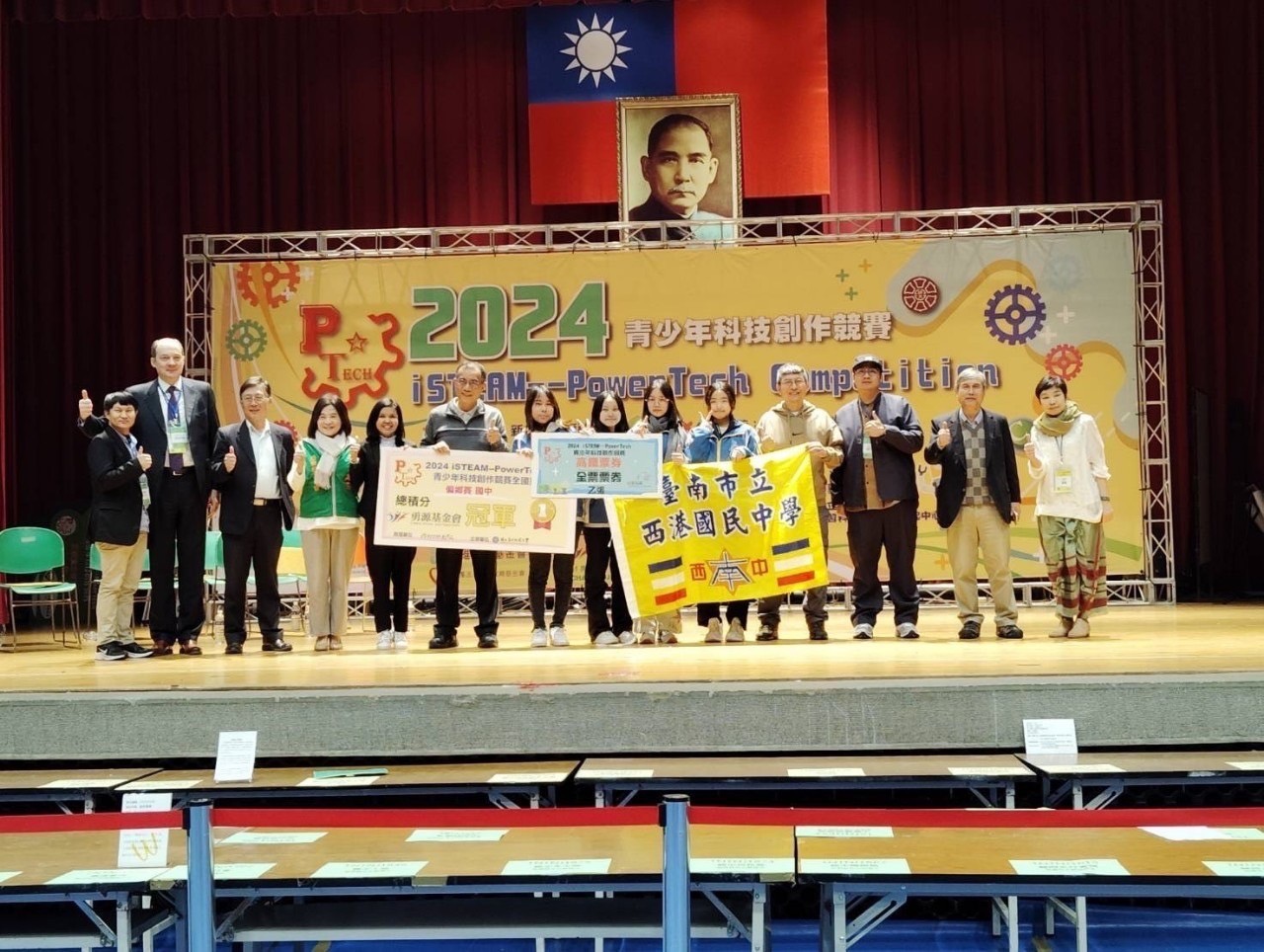 臺南科技教育再創佳績!由國立臺灣師範大學舉辦的「2024 iSTEAM PowerTech青少年科技創作競賽全國賽」日前落幕,全國共有328支隊伍、超過1,600名選手同場競技,臺南市西港國中「科技創作2隊」、子龍國小「子龍機械團」雙獲偏鄉賽國中、國小組冠軍;新興國中「新興星光A」則榮獲全能賽國中組總積分冠軍,另有多所學校在單項競賽中表現亮眼,展現臺南深耕科技教育的厚實成果。