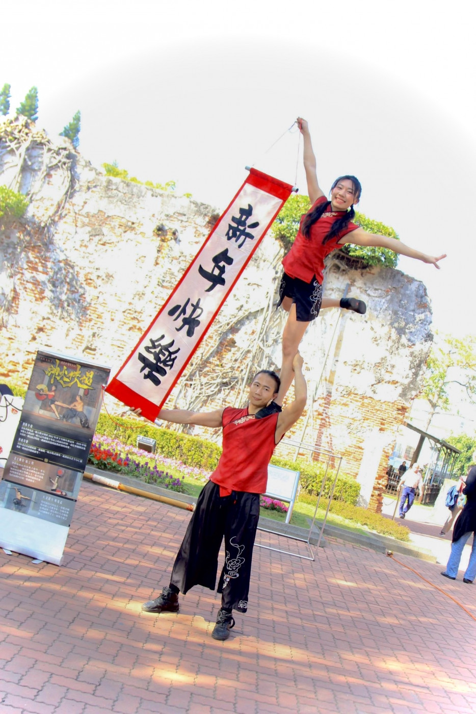臺南市政府文化局長林韋旭代理局長表示,農曆年前文化局也在赤嵌樓、安平古堡、億載金城、安平樹屋等各大古蹟景點完成「古蹟新春佈置」,以傳統年節裝飾妝點,讓大家感受過年氣氛。今年農曆春節期間規劃的「古蹟賀歲雜耍特技演出」,特別邀請日本泰國夫妻雙人組「ANNUTS」、臺灣「天際高空skyline Aerials」以及「神火俠侶一足獨秀」等多組達人團隊在各大古蹟區輪番獻藝,大環特技、足技、高空綢吊藝術特技、自創玩具互動融合古典樂等視聽饗宴,還有大小朋友最喜歡的氣球及喜劇互動。另連假期間各景點也安排有免費「古蹟新春導覽」服務,讓民眾除可以觀賞動態表演外,還可以增進對文化歷史的認識。