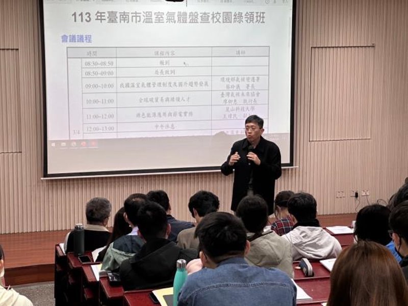 南市環保局結合成功大學開辦「113年臺南市溫室氣體盤查校園綠領班」(記者華民鳳攝)