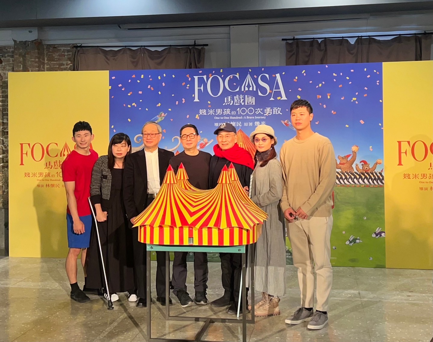 今(5)記者會上,不僅邀請文化部長李遠親臨現場;雲門舞集創辦人林懷民、繪本作家幾米與FOCASA馬戲團團長林智偉也同台亮相,陣容華麗一字排開。記者會正式公布本次定目劇海報視覺,宣告即日起發售《幾米男孩的100次勇敢》88折早鳥票,且購票即有機會抽到四款幾米限量紀念品。FOCASA馬戲團現場也特別準備兩段精彩好戲,包括幾米繪本中深受喜歡的經典角色盲女,表演「平衡走椅子背板」馬戲特技;另一段是幾米男孩演出「花式長板凳特技」。