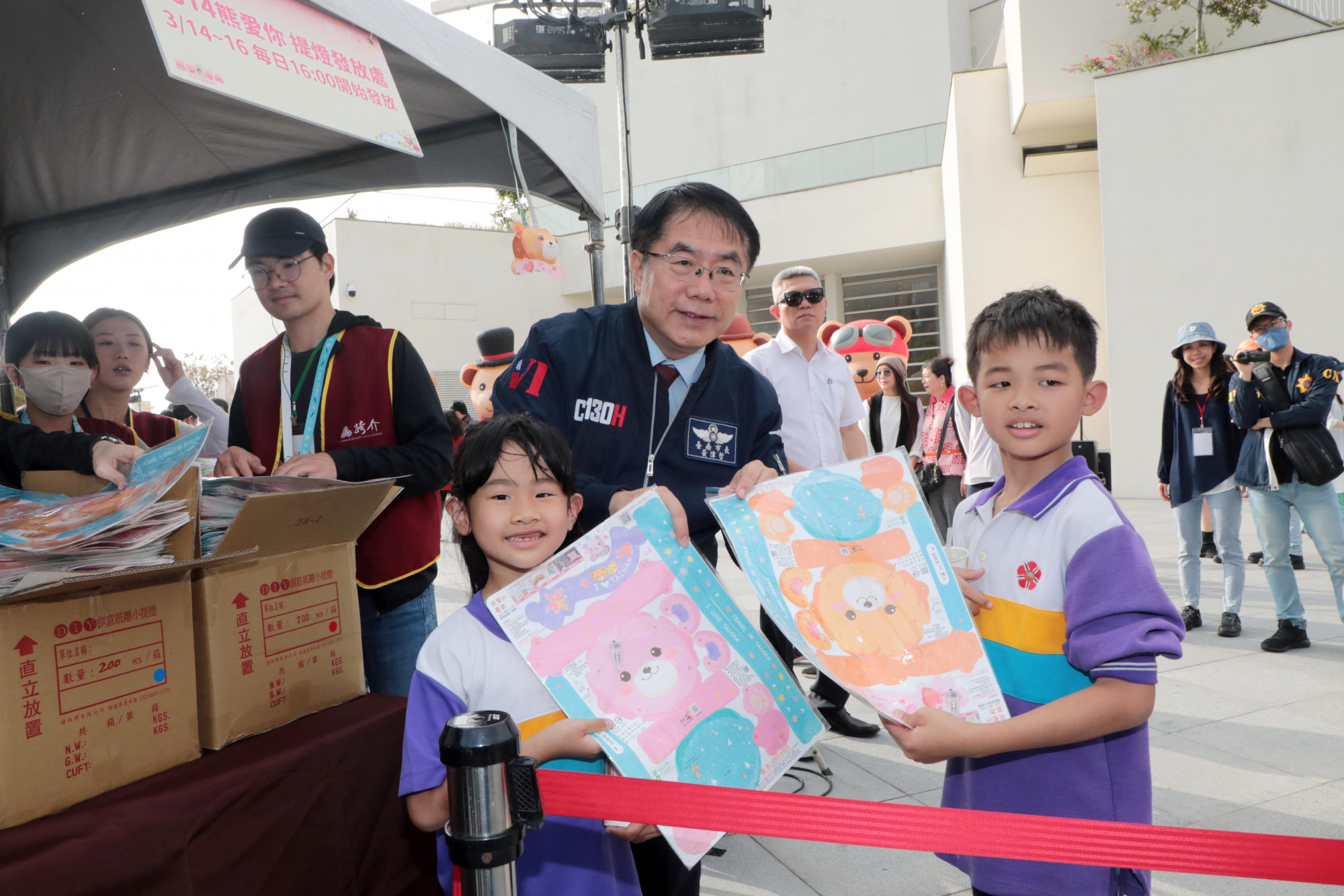臺南市長黃偉哲也親臨現場分送精典泰迪熊情侶小提燈,許多民眾爭相索取和拍照,讓南美館2館戶外廣場人氣滿滿。 黃偉哲表示,「熊愛臺南」活動精心策劃了一系列豐富內容,5隻可愛的精典泰迪熊氣偶、搭配周邊甜蜜浪漫市集及藝文表演,超過40個攤位的「熊好迺」的LOVE市集,還有「熊耀眼」的幸福舞台,活動三天有多場的精彩表演,為白色情人節增添粉紅色浪漫氛圍,期待無論是情侶、家人、朋友都能在臺南感受滿滿幸福。