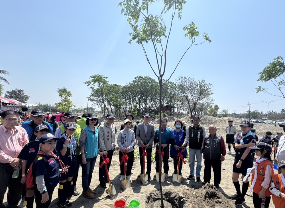 【記者陳岑博/台南報導】台南市政府今(22)日攜手林業及自然保育署嘉義分署,於臺南市南區綠9綠地共同舉辦「手植希望 綠網相連」植樹活動。活動開始由龍崗國小鼓藝隊熱鬧揭開序幕,並邀請樂憨之家帶來精彩的波浪舞表演,炒熱現場氣氛。葉副市長澤山、徐建麟參事、林業及自然保育署嘉義分署副分署長李定忠及農業局主秘吳威達,偕同林美燕議員、李啟維議員、林俊憲立委特助、蔡淑惠議員秘書、林依婷議員助理、南區區長蕭秀華、頂正科技公司董事長岡部太一、遠東百貨台南店徐聖彬副理、台南市童軍會周生民總幹事、龍崗國小李啟榮校長、臺銀人壽王維文經理、南區鯤鯓里里長陳金江等貴賓及市民朋友,共同種下象徵希望的樹苗,展現對環境永續的承諾,並號召全民共同參與綠化行動。