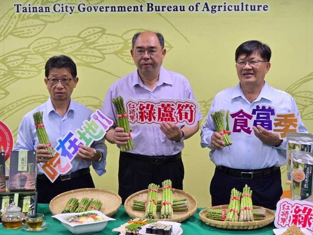 臺南市蘆筍為全台第二大產區,本市將軍區露天栽培之綠蘆筍每年3至6月為採收期,蘆筍栽種面積約50公頃,年產量約可達到160公噸,今年受氣候影響採收期延後,產量略降,產值提高。