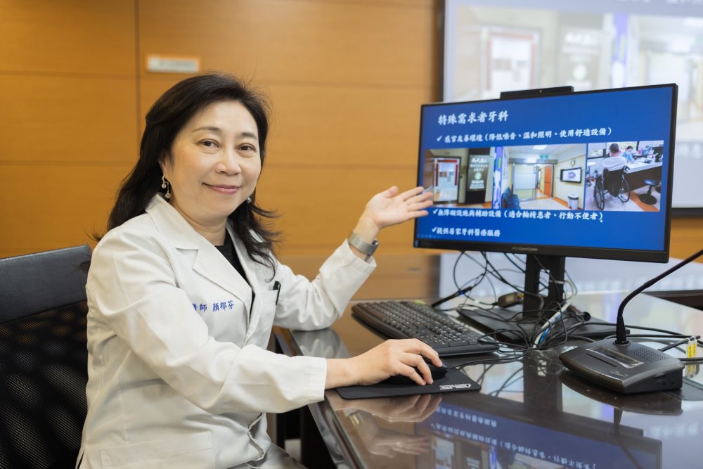 顏郁芬醫師說明,考量許多特殊需求患者對牙科環境感到緊張,成大醫院口腔醫學部特別打造感官友善的診間設計,包括無障礙空間、低刺激環境與專業設備,具備寬敞的輪椅通道、柔和燈光、低噪音設計,及可調式治療椅與鎮靜技術,幫助患者放鬆接受治療。醫療團隊也採取漸進式適應計畫,例如讓患者在未治療的情況下先熟悉診間環境,透過家屬陪伴建立對治療的信任感,並運用行為管理技巧,引導患者循序漸進地接受治療。對於長期臥床或嚴重行動不便的患者,也提供居家牙科醫療服務,讓患者能在家中獲得專業檢查與必要治療。研究顯示,這類患者的口腔健康與全身健康密切相關,透過居家牙科醫療,不僅能降低因口腔疾病導致的併發症風險,還能提升整體生活品質。