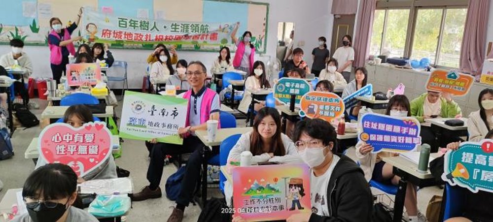 臺南地政主任林建良補充,課堂中除了推廣地政專業知識的觀念,特別針對時下不動產財產安全及防範詐騙等熱門議題,讓同學們及早了解未來求職、租屋要可能會面對的風險,並推廣「地籍異動即時通」、「住址隱匿」及「指定送達處所」等3重防護措施,強化防詐意識,保護個人財產安全,避免在買賣、租賃或繼承不動產的過程中遭到詐騙;現場也藉由有獎徵答的方式與同學互動,加強學生各種地政知識,讓學生更容易理解、也更願意主動學習。