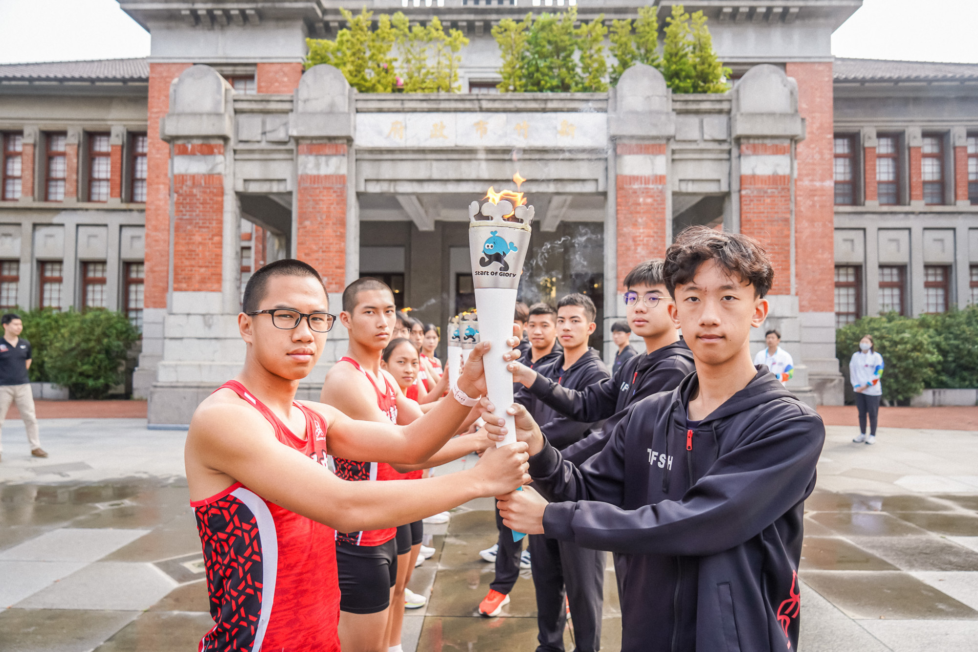 新竹市站的聖火傳遞儀式於市政府前廣場隆重舉行,由教育處林立生處長代表迎接聖火。此次傳遞學校成德高中以優異的田徑隊作為代表,該隊長年以嚴謹訓練與堅定毅力聞名,於短跑、長跑、跳躍與投擲等項目屢奪佳績,曾多次刷新全中運紀錄,並有選手挺進國際賽場,為國爭光,展現新竹在教育與體育領域的堅強實力與深厚潛力。