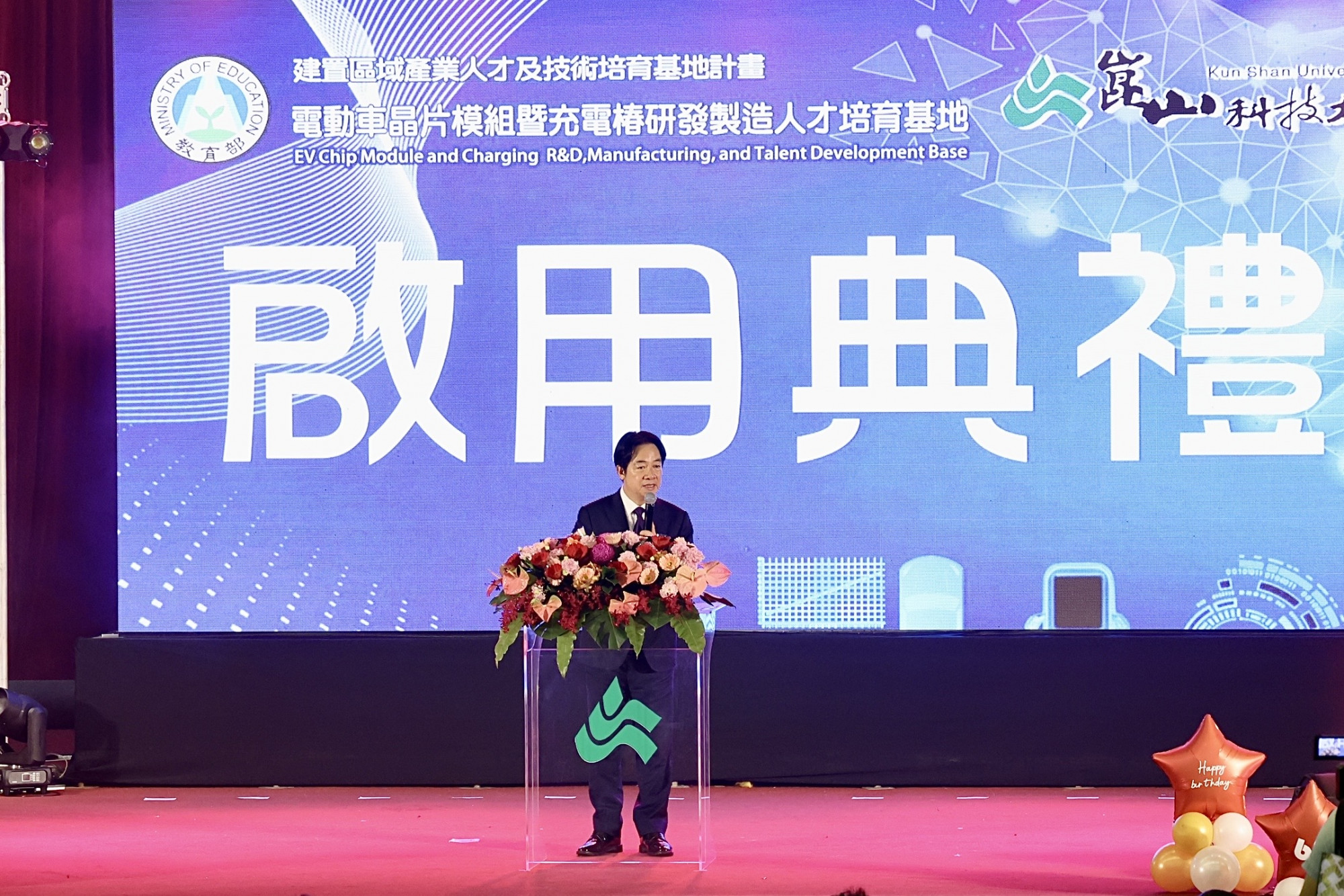 崑山科技大學今(12)日舉行「電動車晶片模組及充電樁研發製造人才培育基地」啟用典禮,正逢創校60週年校慶,臺南市長黃偉哲也受邀,與賴清德總統、總統府資政沈榮津、教育部政務次長張廖萬堅、交通部政務次長陳彥伯、立法委員林俊憲、林宜瑾、陳亭妃、王定宇等貴賓,共同見證南部首座電動車專業培訓場域啟用。