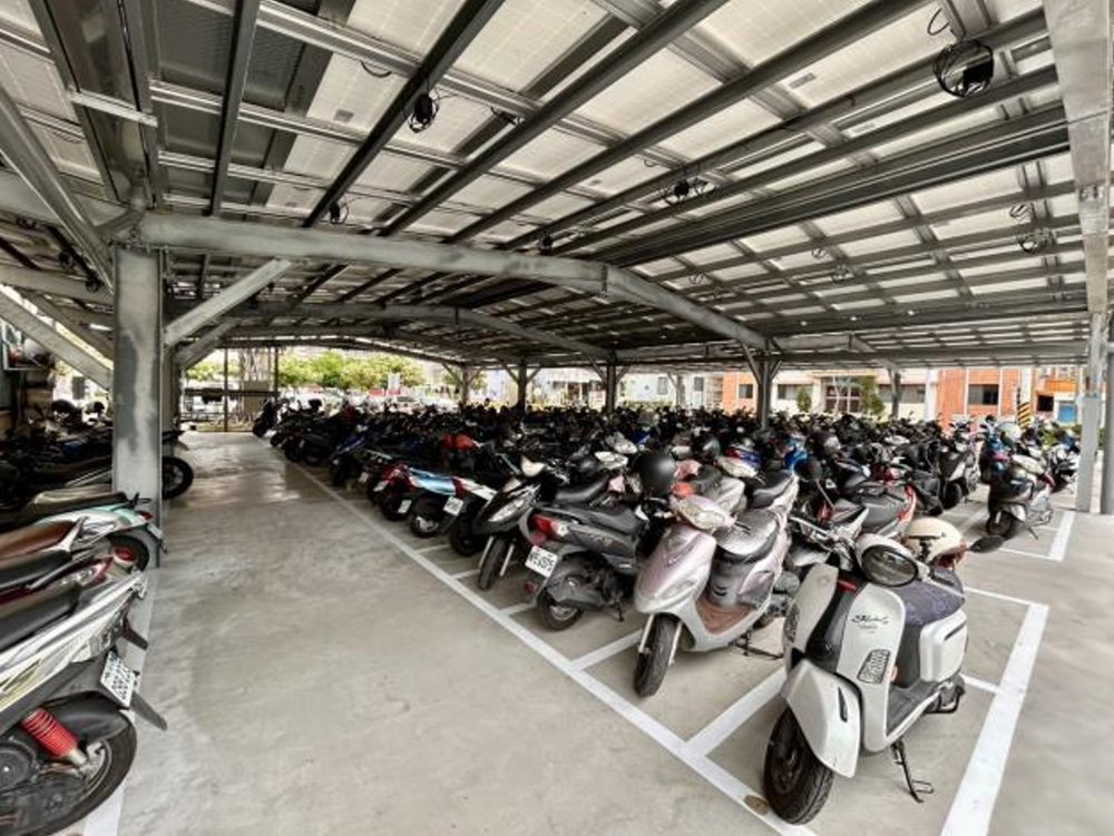 秘書處表示,這次更新採取「市府提供場地、廠商出資建置」的雙贏模式,市府不需支付建置費用,即可擁有嶄新的光電機車棚。今(114)年2月底,廠商已完成整體硬體結構與地坪整修作業,並順利裝設完成總容量達95.095kW的太陽能光電系統,同時劃設203個機車停車格,現已全面開放同仁停放使用。不僅如此,本案亦兼具財政效益,依照合約,廠商每年將回饋本府躉售電價收入的5%,預估每年可為市庫挹注綠能收益,在打造低碳城市的同時,也為市政發展注入實質助力。