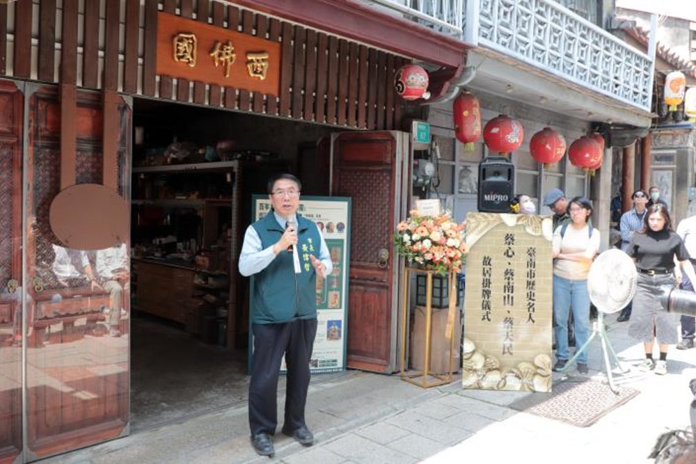 【記者廖啓舟/台南報導】台南市政府今(21)日上午於中西區神農街的蔡心、蔡南山、蔡天民故居-府城粧佛工藝名家「西佛國」舉行名人故居掛牌儀式,市長黃偉哲親自為蔡家故居揭牌,表彰其對本市傳統藝術保存與發展的卓越貢獻,現場包括西佛國蔡家族人、傳統藝師及地方仕紳齊聚一堂,市議員許至椿及蔡宗豪等亦前來參與,共同見證這歷史性的一刻。
