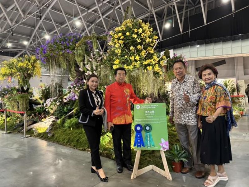 郭主席一行人在世界蘭展會場,跟由泰國團隊獲得景觀設計第一名的作品驚喜相遇,他們對於自己同胞的傑出表現都表示與有榮焉。此外,訪賓對於參觀蘭展能一次看遍如此多種美不勝收的蘭花,感到驚艷,此外也對結合農業生技與文化美學的台南蘭花產業,表示印象深刻。