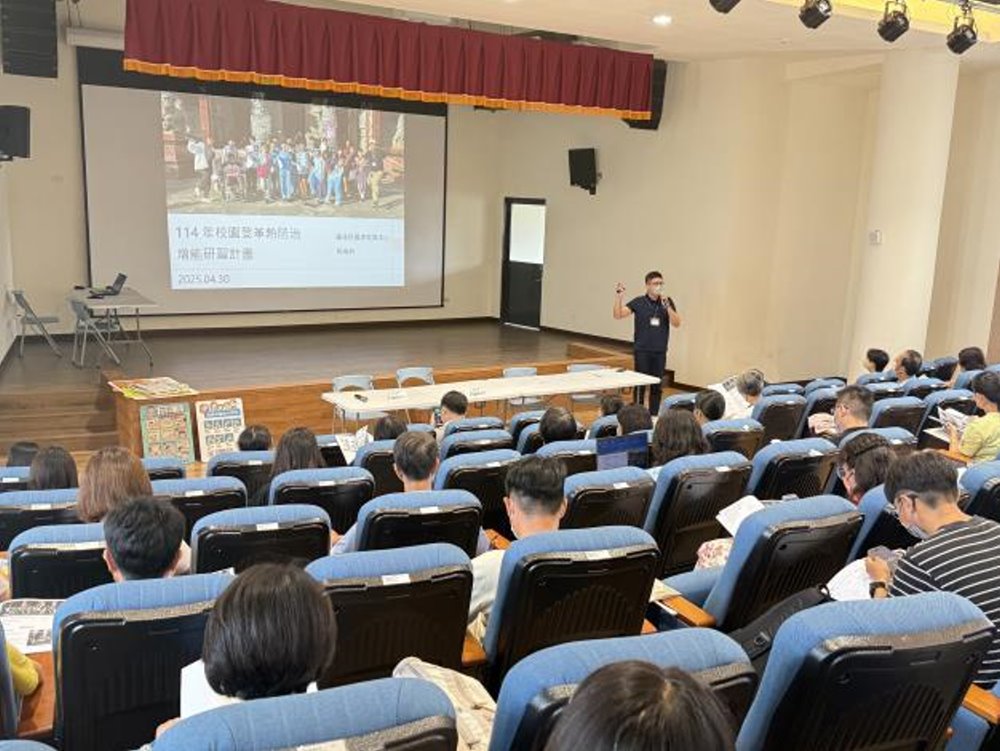 【記者陳岑博/台南報導】隨著春夏季節到來,疫情指數隨著氣溫逐漸升高,為提升學校第一線教職員工對腸病毒及登革熱之防疫應變能力,南市教育局4月30日在鹽行國中辦理「114年校園登革熱防治暨腸病毒增能研習」,邀請國衛院國家蚊媒中心及衛生局的專業講師分享登革熱和腸病毒防治的作法,超過400位來自全市各級學校與幼兒園的老師踴躍參與,教育局副局長楊智雄也代表到場向參與研習的老師致意與鼓勵。