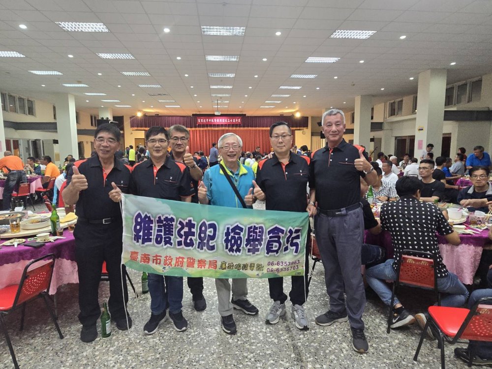 分局長施衣峯與佳里友辦事處主任周文雄、巡守中隊長蕭棟斌等人一起參加佳里巡守中隊舉辦的警民聯誼餐會,共襄盛舉。