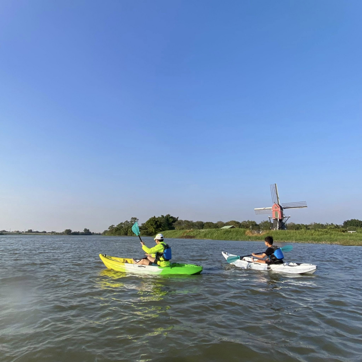 德元埤荷蘭村營運廠商-特活綠小舖股份有限公司陳駿億經理表示,「風車漫舟」不僅是水上活動,更是一段輕鬆愉悅的享受,讓您與同伴手牽手,划向水中央,共同創造唯美的瞬間,無論是浪漫告白,還是姐妹出遊,甚至親子同樂,這裡都是您拍照打卡的最佳場所!別忘了抬頭欣賞那片蔚藍天空與飄逸白雲,隨手拍照都可成為桌面背景的漂亮風光,讓您的旅程充滿浪漫的回憶。